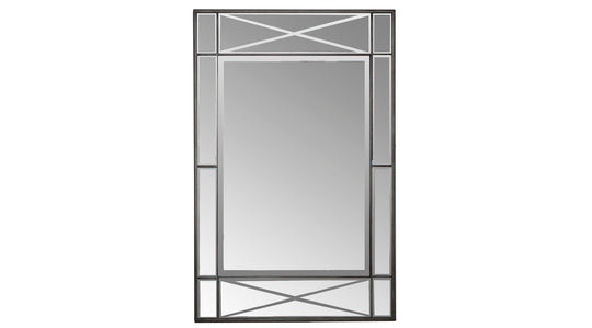 Crafted From Hand Forged Iron, This Rectangular Mirror Features Raised Geometric Detailing Finished In A Rustic Aged Black With Subtle Silver Highlights And A Gray Patina Wash. The Mirror Is Surrounded By A Generous 1 1/4"...Sale price $389.00Regular price $699.00Sale price $389.00Regular price $699.00