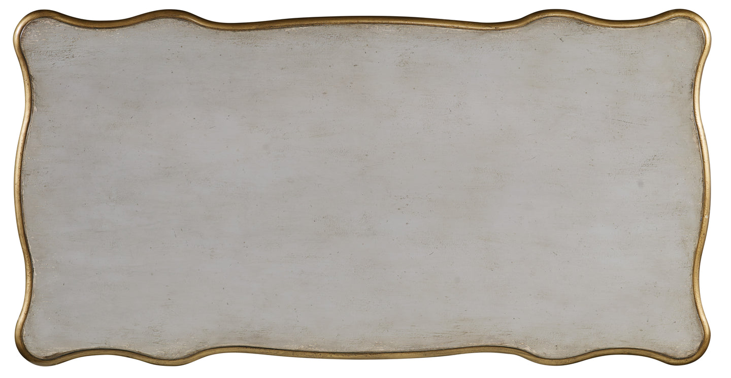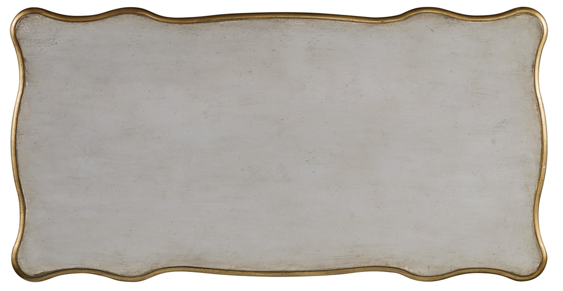 French style lovers can create a romantic work-from-home solution with this exquisite desk in a soft gray finish with gold accents, a shapely apron and cabriole legs and gold medallion hardware. In an efficient 54-inch width, the desk features a center drawer with drop-front for keyboard use, 2 utility drawers with one removable writing insert and pencil tray with felt bottom for use in either drawer and 2 removable dividers in each drawer.