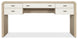 - Two-tone finish features elm veneers in a pebble hue with drawer fronts and visitor side panel in a contrasting ivory with leathered texture