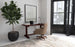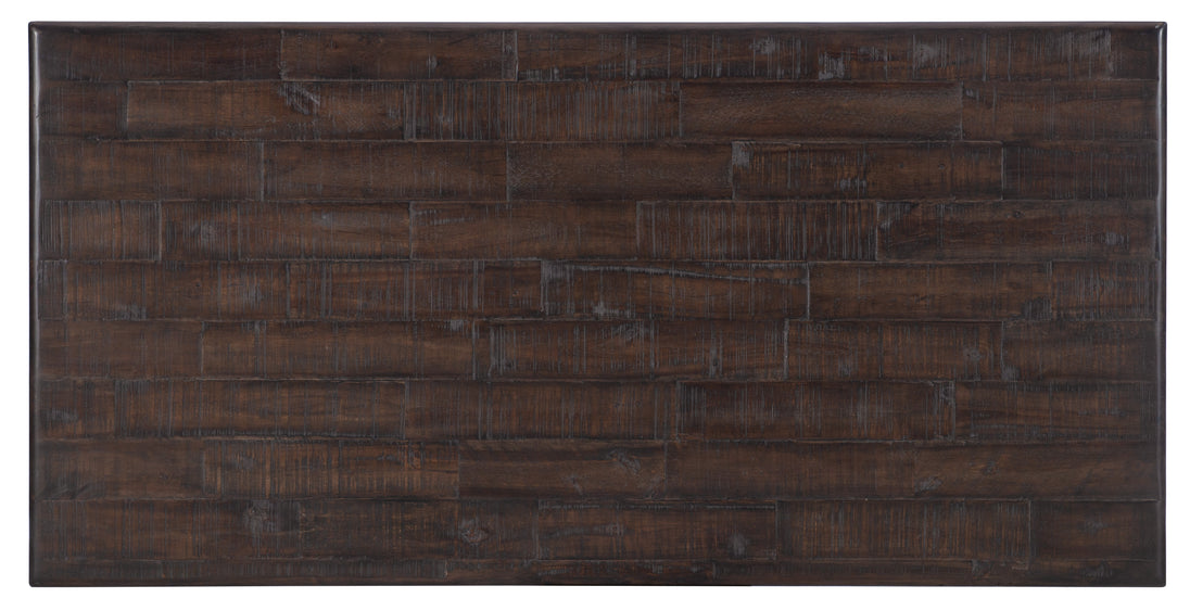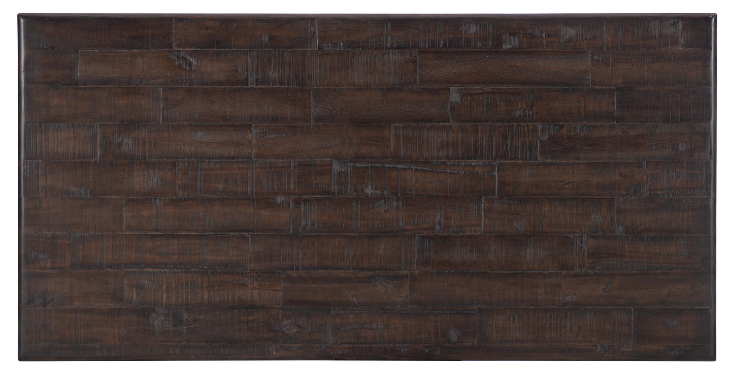 Rustic and modern, the Commerce & Market Beam Desk has a reclaimed wood look with farmhouse charm. Crafted of tactile Acacia Solid Wood, the desk features a planked top, beam-like base and dark natural wood finish.