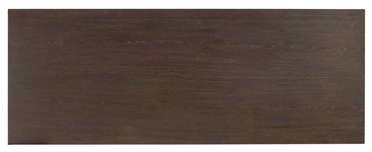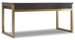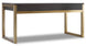 With an eclectic mix of a rustic White Oak veneer desk top in a deep brown Midnight finish and a brushed brass base, you can create a curated chic modern look in your office or family room space. Two drawers are offered with drop front for keyboard use. This versatile modern desk can be used free standing or as a left or right-hand desk in an L-configuration.