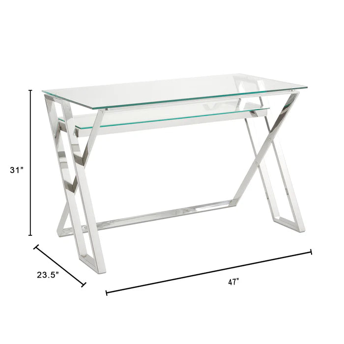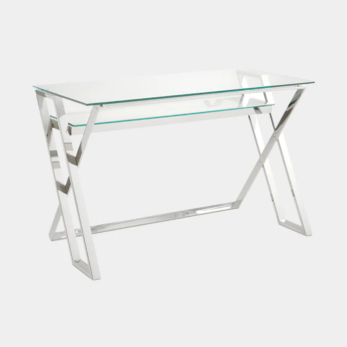 Harvey Desk is a sleek and stylish addition to any office space. Crafted with a tempered glass top, it exudes elegance and durability. The polished stainless steel or gold frame adds a touch of sophistication. With dimensions of 120 x 60 x 78 cm (47.2 x 23.6 x 30.7 inches), it offers ample workspace.