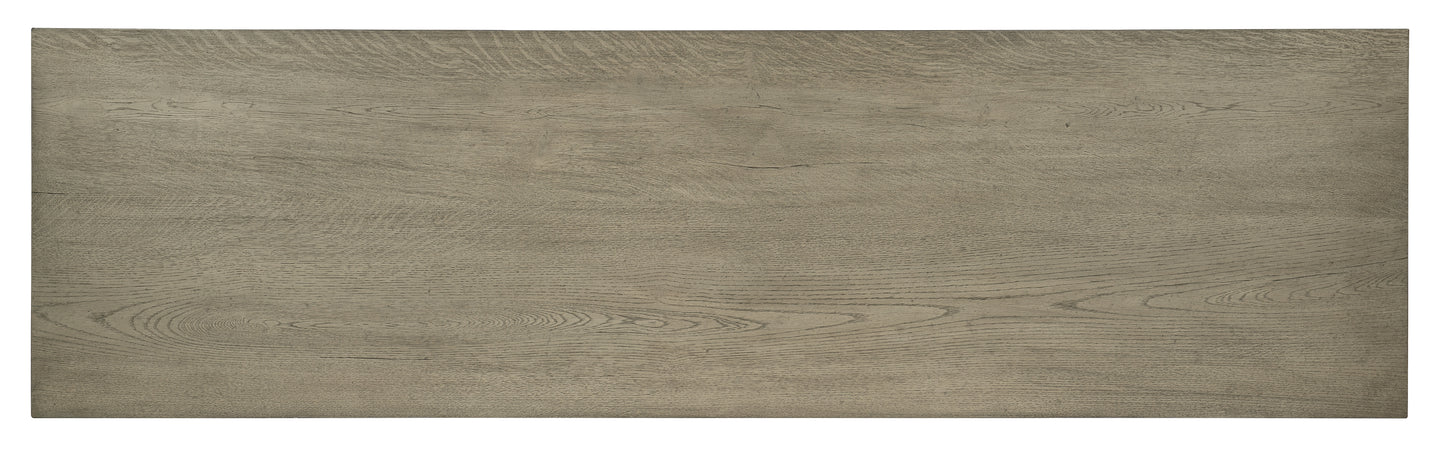 Capturing the essence of nature’s organic color palette on a clean-lined, simple silhouette, the Linville Falls Desk is crafted of Oak Veneers with a soft smoked gray Mink finish. The 84-inch rectangle-shaped desk has two leg end panels and is fully finished on all sides so it can be floated in a room.