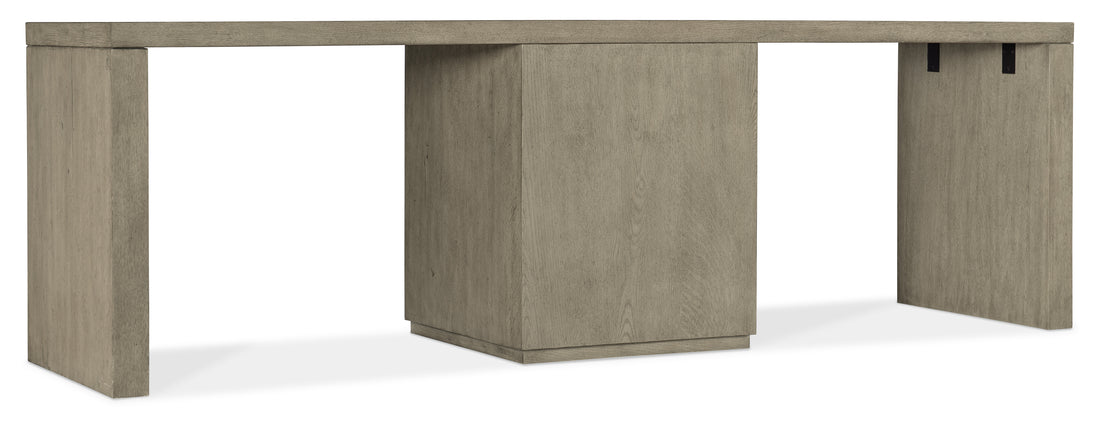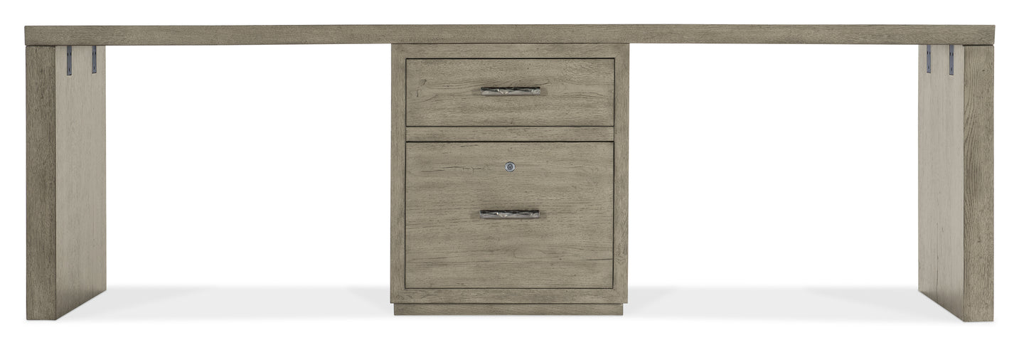 Capturing the essence of nature’s organic color palette on a clean-lined, simple silhouette, the Linville Falls Desk is crafted of Oak Veneers with a soft smoked gray Mink finish. The expansive 96-inch wide top has a functional base with a small file in the center and two leg end panels. The small file has a top utility drawer and a lower locking file drawer with pendaflex filing system. The desk is fully finished on the back so it can be floated in a room.