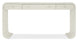 With a tactile organic surface of white lacquered grasscloth, raffia and wood in the creamy white Sand Dollar finish, the Serenity Bayport Writing Desk brings the relaxed aura of the outside in. With 3 drawers, the left and right side drawers have a removable writing slide and pencil tray for use in either side, 2 removable dividers in each side drawer and the center drawer has a drop-front for keyboard use and wire access at the back of the drawer. As a finishing touch, the drawer interiors are painted white.