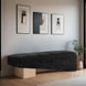 Sleek and sculptural, the Alora polyester fabric upholstered bench is a striking example of minimalist elegance. Wrapped in soft fabric, the elongated seat sits atop a bold natural wooden base, creating a unique juxtaposition of textures. Its asymmetric silhouette adds a touch of modern artistry, making it an ideal statement piece for contemporary spaces.