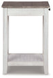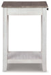 Cette table d'appoint allie modernité et charme vintage. Fabriquée en bois, elle arbore une finition blanche et grise patinée et des pieds en croix sur deux côtés, créant ainsi une ambiance rétro. Deux ports de chargement USB lui confèrent une fonctionnalité moderne. Un incontournable pour votre salon.