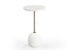 The Aeirith accent table embodies modern sophistication with its unique design and high-quality materials. Its spherical sand-blasted white marble base perfectly complements the live-edge white marble top, creating a stunning focal point for any room. The solid iron frame finished in antique brass adds a touch of warmth and elegance to the overall aesthetic. Crafted with attention to detail, this accent table showcases the natural beauty of marble with its sandblasted texture and distinctive live-edge feature.