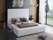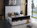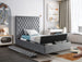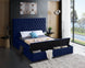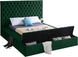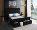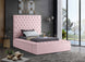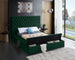 Extend elegance to the bedroom with this Bliss velvet bed. This bed has a rich look, with deeply tufted upholstery along its upper platform perimeter and headboard, ensuring that it is a good fit in modern bedroom themes. Storage rails and footboard are included to ensure maximum versatility, and the bed comes with slats, so you can use it without a box spring. The velvet fabric used in its design makes it easy to integrate alongside other furnishings.