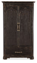 Reimagining an historical piece with a fresh take on finish, function, hardware and form, the Americana Wardrobe has shaped carved door fronts with an architectural arched design and scroll accents on the base. Crafted of Oak Veneers, it is finished in the time-worn with a warm interior finish. There’s mirrored glass on the interior of the doors, one removable clothing rod, two adjustable wood shelves and 3 self-closing drawers. The top left drawer has black removable felt liner and the top right drawer has a black felt liner and removable felt-lined jewelry tray. The one bottom drawer is self-closing.