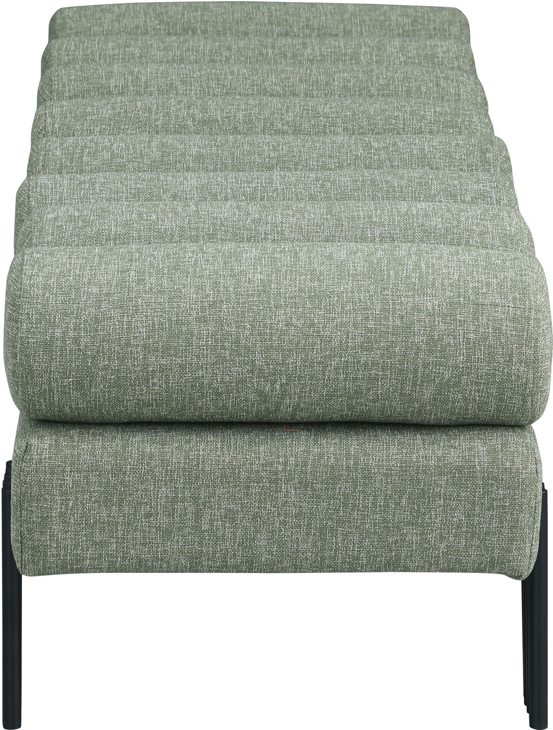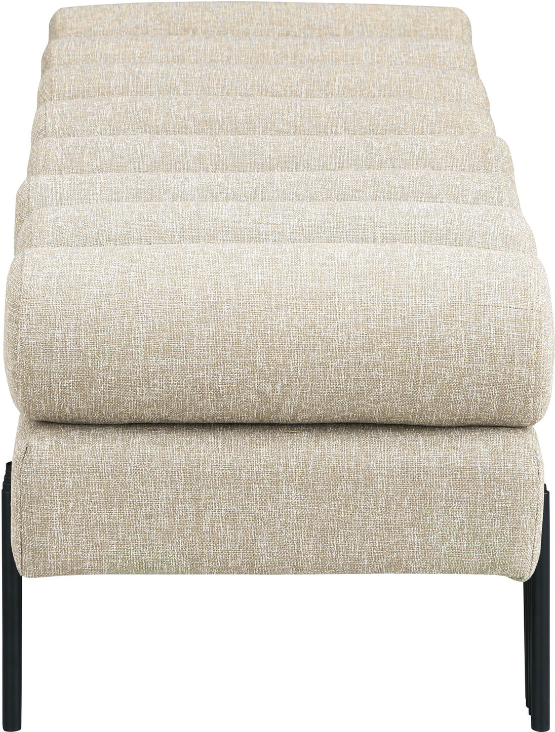 Revitalize your seating area with this stunning Akeela linen textured fabric bench featuring a rolled cushion top. Upholstered in rich linen textured fabric, this bench delivers both comfort and sophistication and features matte black metal legs to provide sturdy support while adding a modern touch to its art deco design. An ideal addition to an entryway, bedroom, or living room, the bench redefines your space with timeless charm.
