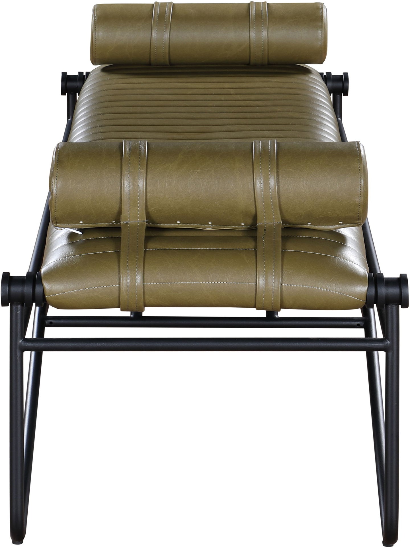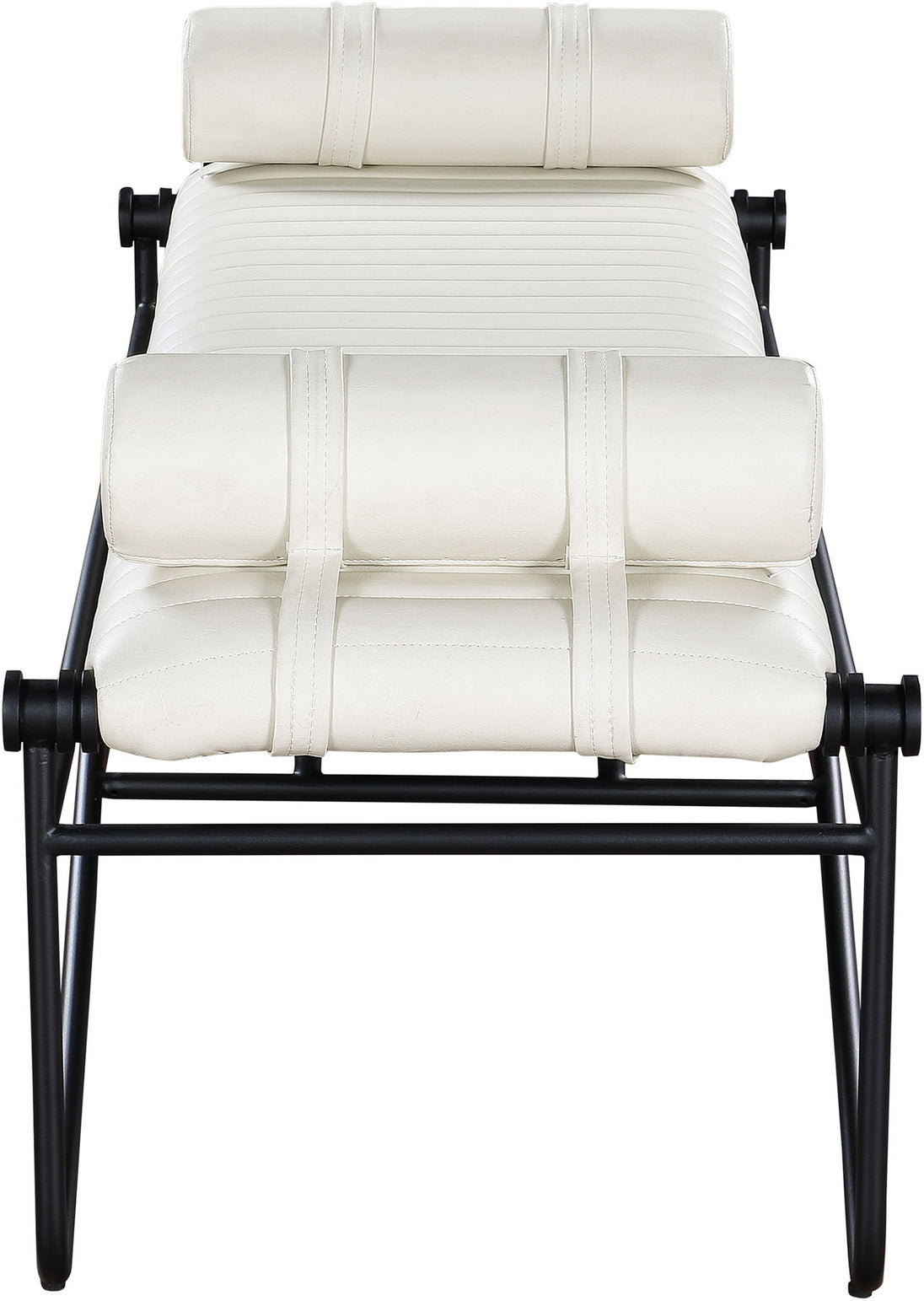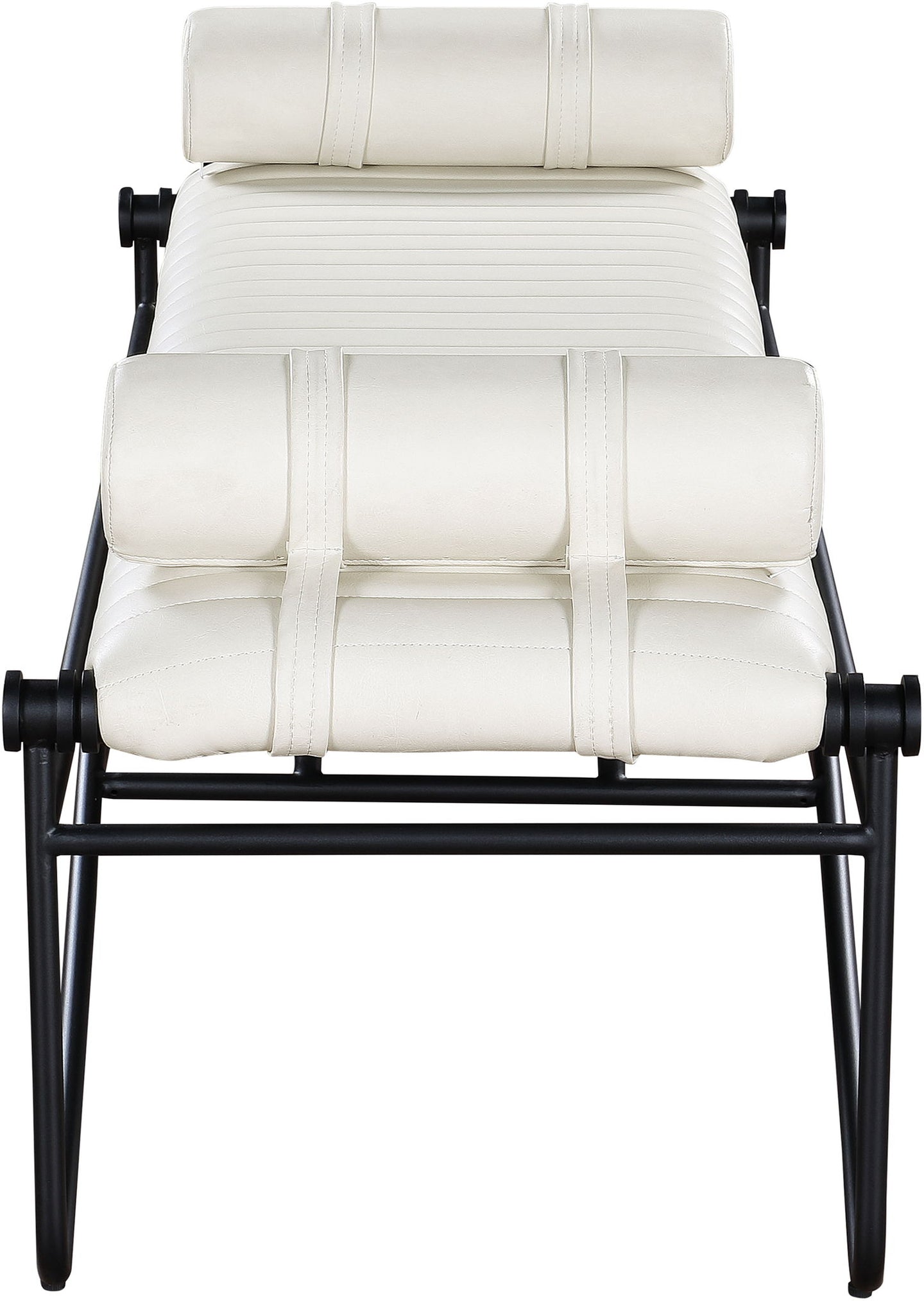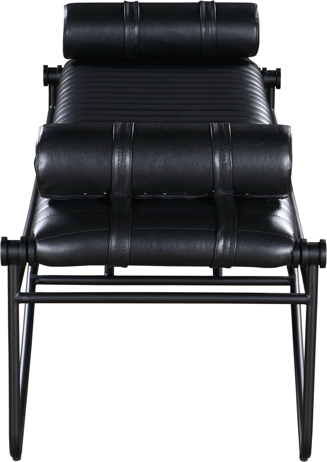 Elevate your space effortlessly with this Gatsby Vegan Leather Bench. Swathed in soft faux leather and anchored by a matte black iron metal frame, it boasts a contemporary design that's both sleek and stylish. The included rolled pillows give this bench an upscale yet comfortable look. Whether gracing your entryway with a touch of elegance or providing a chic accent at the foot of your bed, this versatile piece is sure to impress. Upgrade your home decor with this lovely vegan leather bench to give any space a touch of sophistication.