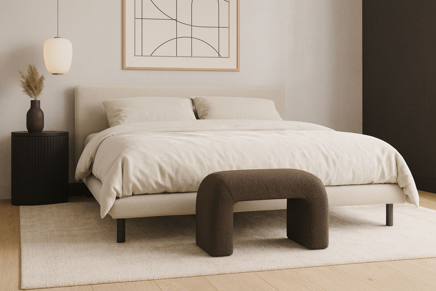 Amp up your modern space while enjoying an additional seat where it's needed with this elegantly crafted Niagara boucle fabric bench. Soft, sumptuous boucle fabric covers this unusually shaped and eye-grabbing bench, giving a soft feel to the touch and adding to its comfort factor. This contemporary bench is perfect for positioning at the end of your bed for a look that wows, or use it in the entryway for a handy and convenient spot to sit while pulling on boots or taking off your shoes.