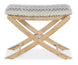 Tropical meets tribal with this Retreat Camp Stool Bed Bench. Featuring a seat upholstered in the patterned Jafar Grey, it has an X-base design. The base and stretcher are crafted of wood finished in the Sand finish, transparent by design to showcase the unique grain patterns of the wood veneer.