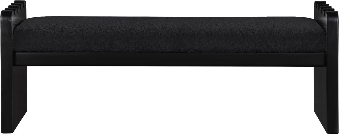 Transform your interior with the Sonia velour fur fabric upholstered bench finished in a rich black wood finish, a harmonious blend of luxury and modern design. Ideal for enhancing the aesthetic of entryways, at the foot of a bed, or as a chic addition to your living room, this bench is as versatile as it is striking. It's the perfect choice for those seeking to add a sophisticated yet functional element to their home decor.