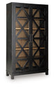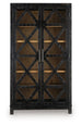 Put your distinctive style on display with this beautifully crafted accent cabinet. Distressed diamond-patterned doors with glass inserts create a chic frame for your favorite decor, while the contrasting black and natural brown finishes add a touch of drama. The magnificent 5-shelf cabinet offers a stunning solution to conquer clutter and showcase your best pieces.