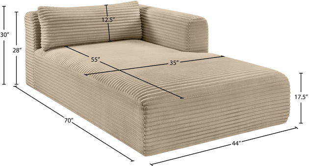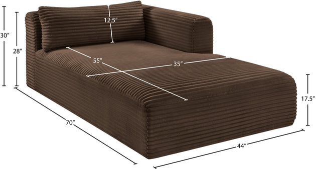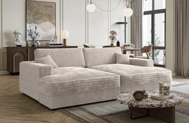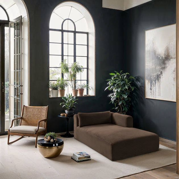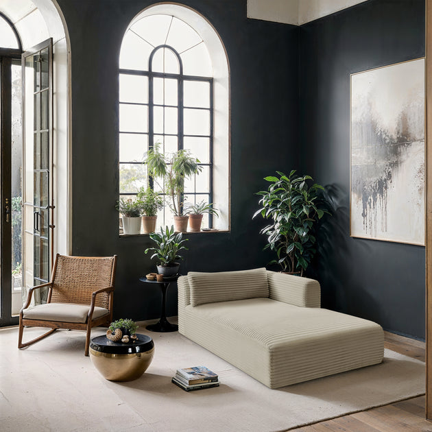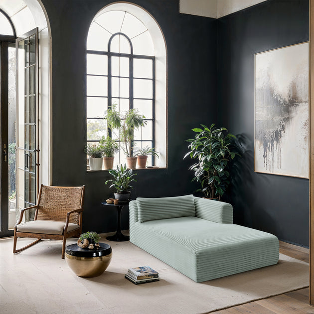 Chaise longue en velours côtelé à poils longs et tissu performant