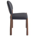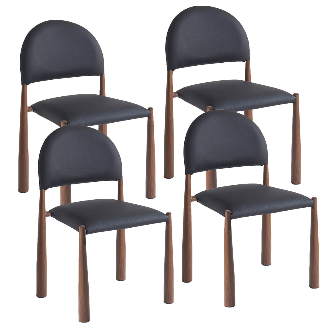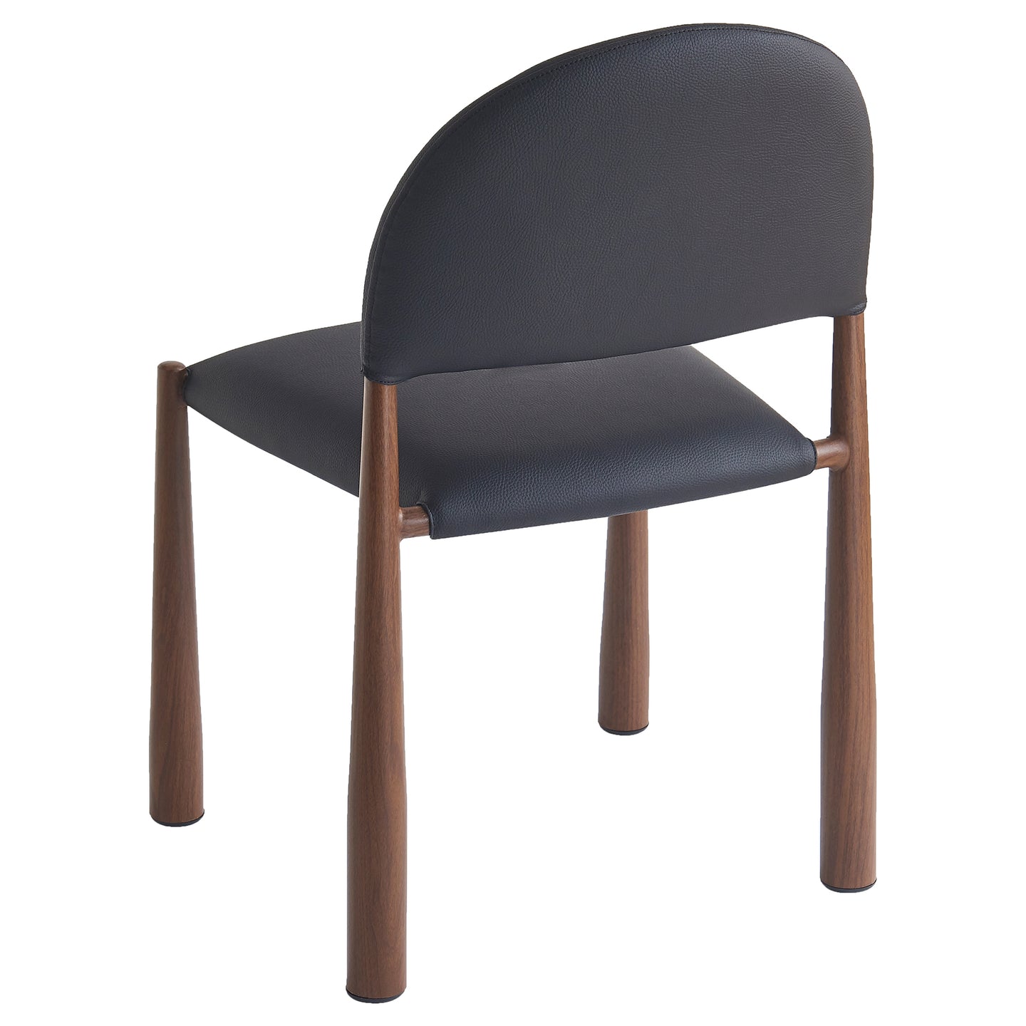 Mid-century influence on this modern chair has results in this unique dining chair. Rounded back and legs create an inviting look, while the textured black faux leather upholstery keeps it fresh and on-trend. Perfect for formal or casual spaces, will match with a variety of table styles and colours.