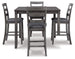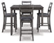 Le gris, c'est facile ! Du moins, c'est l'impression que donne cet ensemble de salle à manger 5 pièces. Cette table haute et ses tabourets de bar, au style transitionnel, arborent une finition gris anthracite et un revêtement gris texturé pour un style tendance et actuel. Le coussin d'assise moelleux en polyfibre pratique invite à la détente. Et surtout, la forme carrée de la table est idéale pour les petits espaces.