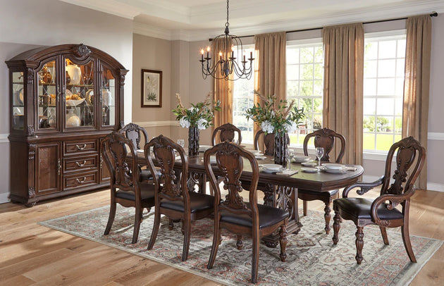 Collection de salle à manger Bennington avec chaises gris foncé – Finition gris antique