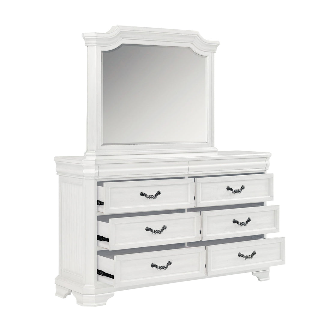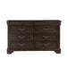 Introducing the Lyndhurst Dresser in — a blend of timeless elegance and practical functionality. Crafted from solid Acacia, Acacia veneers, and manufactured wood, this dresser ensures enduring strength and durability. Its heirloom finish, achieved through a meticulous multi-step process, enhances the wood's natural beauty with subtle distressing, burnishing, and glazing. Substantial moldings, bracket feet, and ornate hardware define its masterful style, making it a standout piece in any bedroom. Inside, the dresser boasts six spacious drawers crafted with English dovetail joinery, full extension drawer glides, and finished interiors, ensuring smooth operation and ample storage for clothing. Two discreet velvet-lined drawers are concealed behind top moldings, providing a luxurious touch for delicate items. Additionally, bottom drawers are cedar-lined, offering optimal storage for sweaters. Elevate your bedroom decor with the stately sophistication of the Lyndhurst Dresser.
