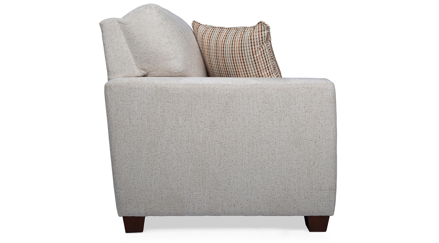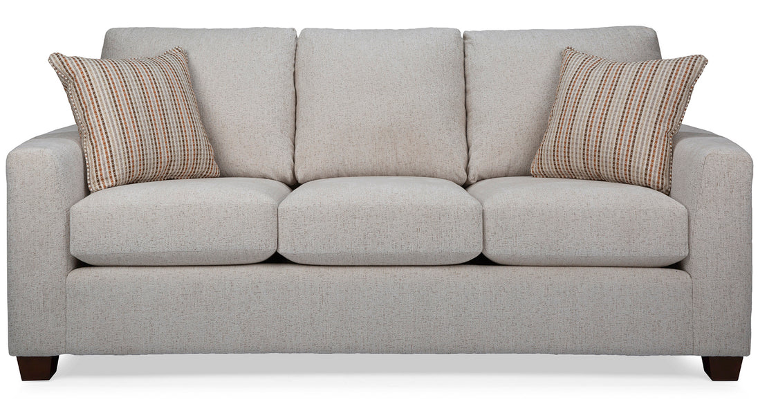 Ce canapé confortable et élégant se distingue par son assise profonde et son dossier semi-fixe. Fabriqué avec soin au Canada, il offre une construction de qualité et un choix de tissus personnalisables pour s'harmoniser avec tous les intérieurs. Disponible en canapé, causeuse et fauteuil.