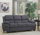 Ce fauteuil inclinable gris élégant est doté d'un dossier à double rembourrage et d'appuie-tête moelleux et généreusement garnis. Le léger galbe des coussins de dossier offre un support suffisamment haut pour reposer la tête, tandis que les coussins sur les accoudoirs invitent à s'y appuyer ou à s'allonger.