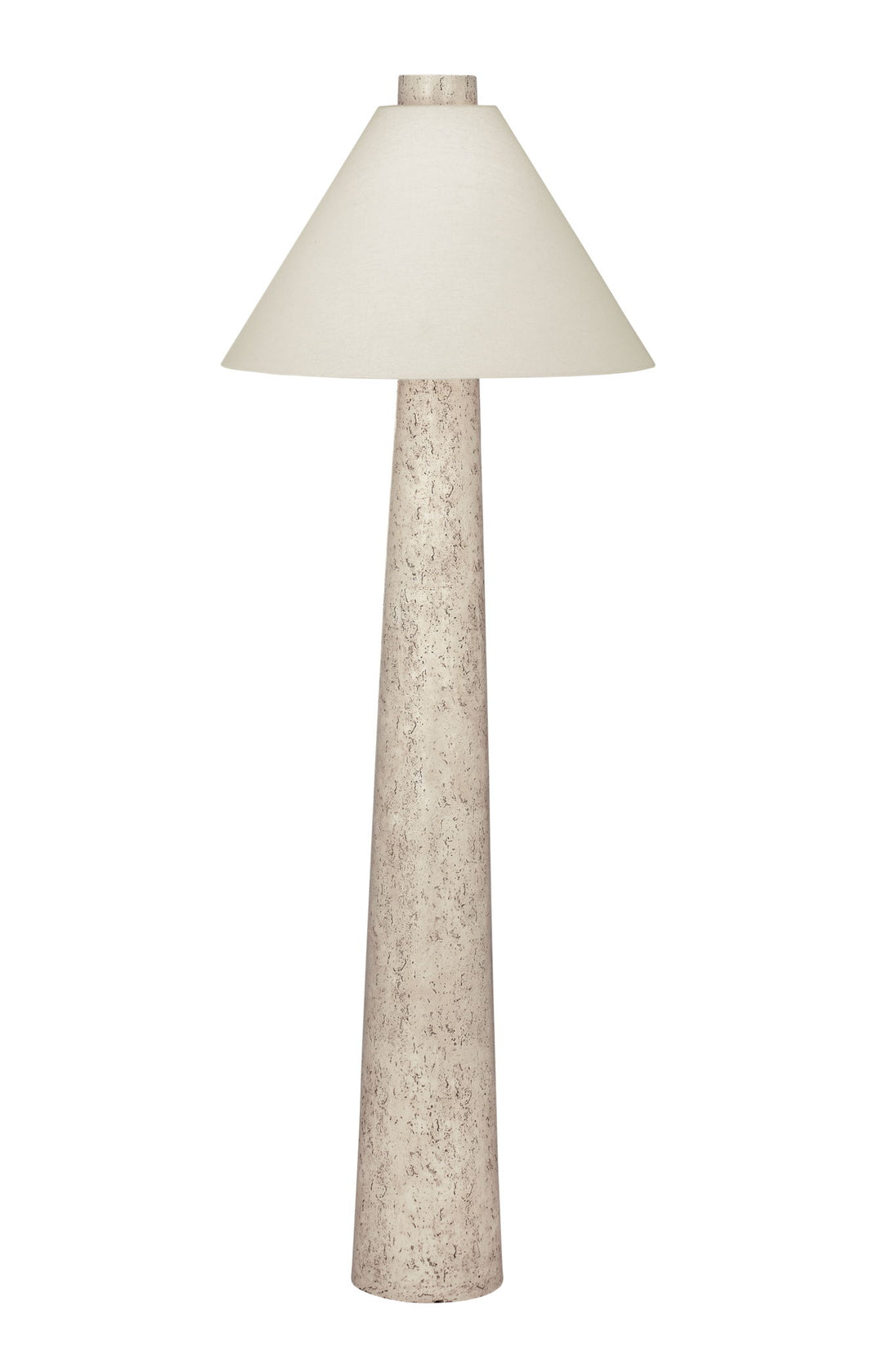 The Butler Floor Lamp is a stylish addition to any space, crafted from durable resin in a textured cream finish. Its tapered drum shade complements its modern design, while also adding a touch of elegance to the room. With its midcentury aesthetics, this lamp brings a timeless charm that effortlessly enhances your decor. Illuminate your living space with soft, inviting light, creating a cozy ambiance for relaxation or entertaining. Trust in the Butler floor lamp to combine functionality with sophisticated style, making it a versatile and reliable lighting solution for your home.