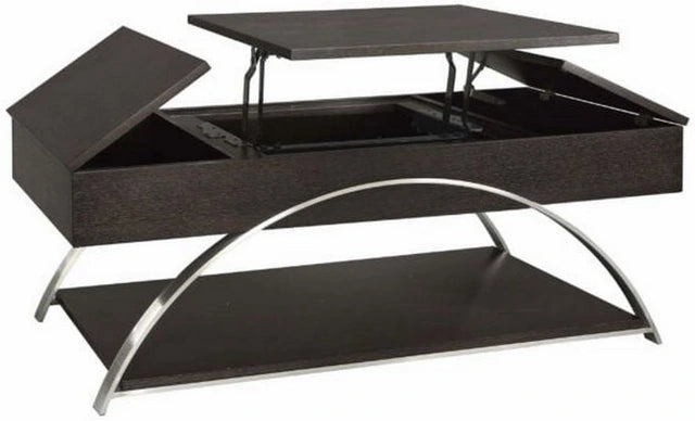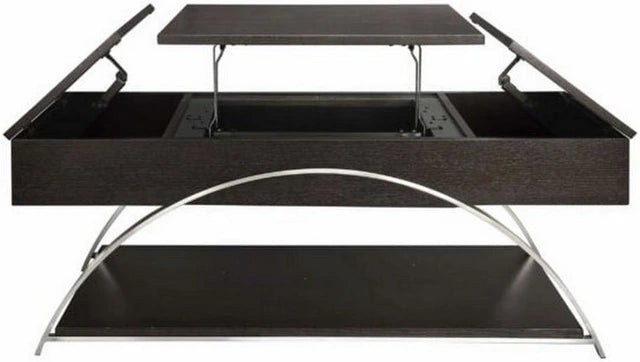 Caractéristiques: Fabriqué en placage chêne, bois d'ingénierie et acier inoxydable. Finition bicolore : espresso et chrome brossé. Plateau relevable central avec rangement intégré. Plateau rabattable double face avec rangement intégré. Étagère inférieure. Assemblage requis. Informations relatives à la Proposition 65.