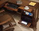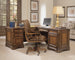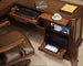 - Bureau à caisson gauche : Trois tiroirs sur glissières à billes en acier, dont deux tiroirs utilitaires, un plateau de rangement compartimenté dans le tiroir utilitaire supérieur, trois compartiments dans le deuxième tiroir utilitaire, un tiroir à dossiers suspendus avec système Pendaflex et un tiroir central à façade rabattable pour ordinateur, une tablette d’écriture coulissante, une serrure de caisson, des passe-câbles et des pieds réglables.