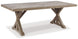 Avec son allure apaisante inspirée du bois flotté, cette table à manger sublime l'art de vivre en plein air. À la fois belle et résistante, elle convient aussi bien à l'intérieur qu'à l'extérieur. Élégante et facile d'entretien, elle séduit par son style campagnard avec ses pieds en X, tandis que son épais plateau en porcelaine apporte une touche naturelle.