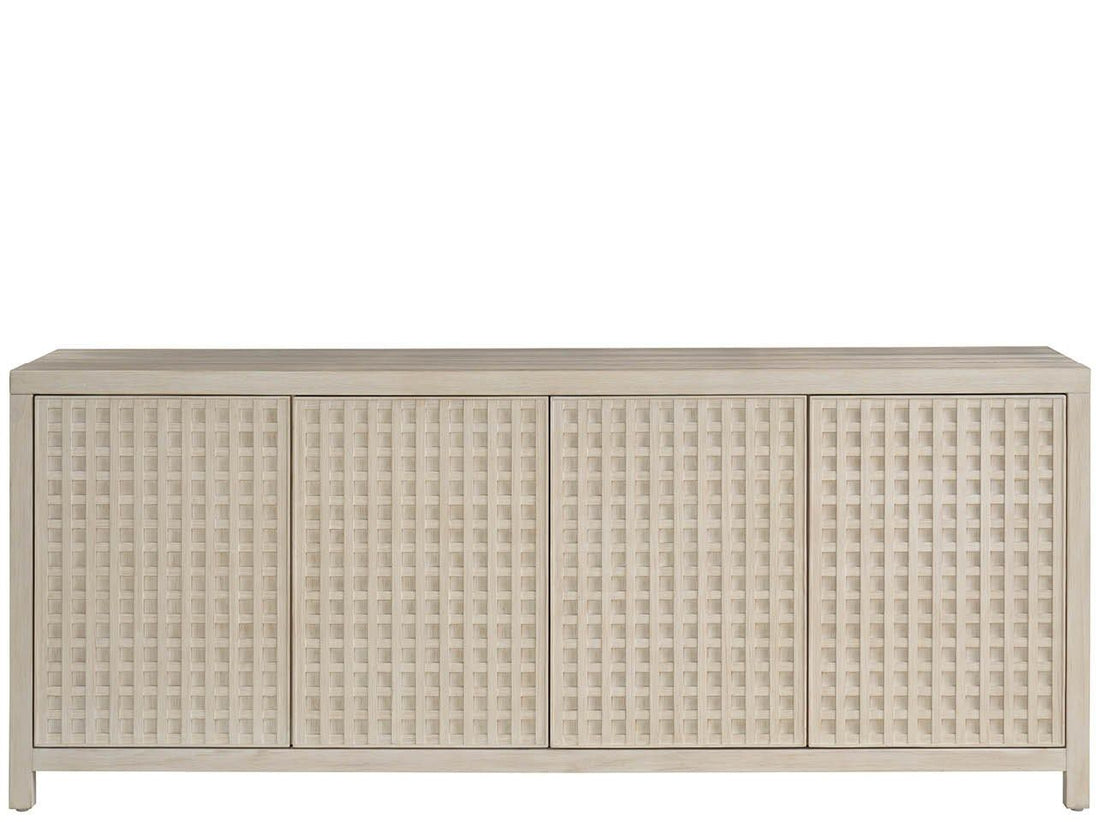 The Credenza features the collection's signature latticework design, adding a touch of architectural interest to your space. Finished in a warm, its ample storage and clean lines offer both functionality and style. This credenza serves as a sophisticated statement piece, perfect for dining rooms, living areas, or entryways.