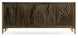 With an air of mystique, the Mountgomery Credenza has a dark wood finish exterior with wavy, grooved door fronts, gold highlighting and shaped gold metal legs. Crafted of Maple Veneers, resin and metal, there are 4 doors with one adjustable shelf behind each pair of doors and a ventilated back panel and FX705 3-plug outlet. Accommodates up to a 75-inch TV.