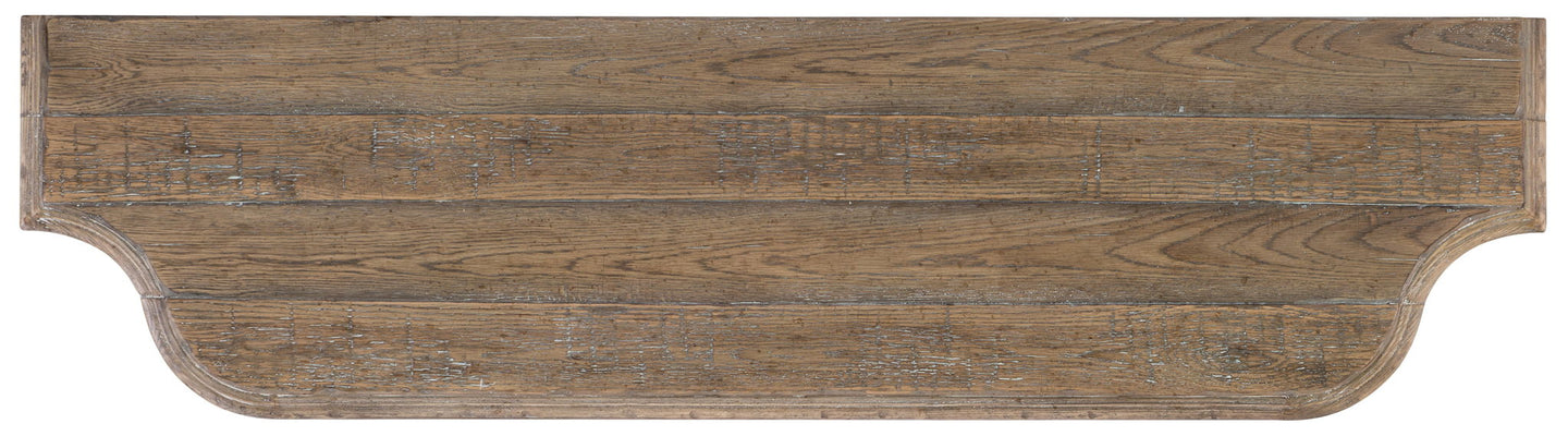 Inspired by the Belgian design aesthetic, the Saint German Server lyrically blends a medley of four neutral finishes: Mercantile White, Merino Blue, Stonewash and Antique Milk Paint. Packed with both style and storage, the buffet server features two drawers behind the center set of doors, a drop-in felt liner and black drop-in silverware tray and two adjustable wood shelves behind each right and left door and one adjustable shelf behind each center door.