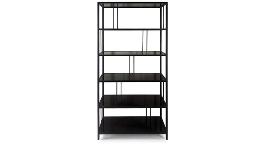 Bibliothèque Brinks Une bibliothèque élégante et moderne, dotée d'étagères en verre noir et d'une structure en métal à la finition laquée noire. Son design contemporain apporte une touche audacieuse et raffinée à tout espace de vie...Prix soldé $1,129.00Prix normal $1,799.00Prix soldé $1,129.00Prix normal $1,799.00