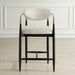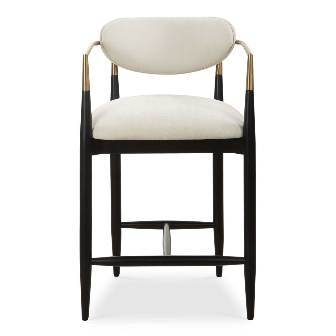 The Sleek Wraparound Frame Of The Moxie Counter Stool Exudes Style And Sophistication. The Tapered Solid Wood Frame Is Finished In Matte Black And Accented By Metal Arms In Plated Brushed Brass. Its Plush Seat And Back Is Upholstered In A Finely Textured Off White, Low Pile Velvet.