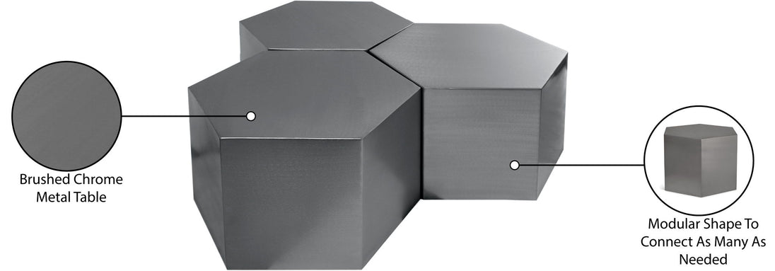 Hexagon - Coffee Table Modular Shape 3 Piece - Pearl Silver