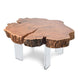 Woodsy charm collides with modern lines in the design of this Woodland coffee table. This table is anything but demure and is bound to attract attention from all angles, whetheryou'rere using it as a spot to play board games on family game night or to hold a glass of wine while you relax and unwind. Crafted from rich, live-edge acacia wood, this table rests on acrylic legs for a modish finish.
