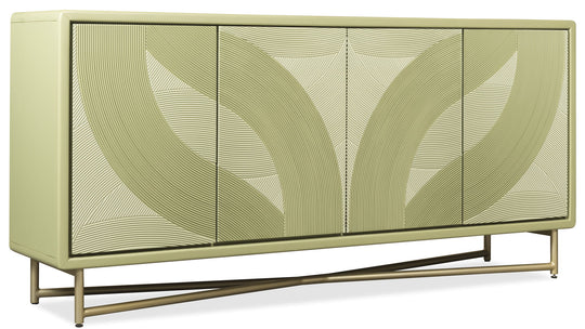 Four touch-latch doors with a carved leafy motif conceal adjustable storage behind this green credenza, grounded by a gold metal base.Product Features Four carved front touch latch doors with soft-close hinges One adjustable wood shelf behind...Prix soldé $3,469.00Prix normal $5,203.50Prix soldé $3,469.00Prix normal $5,203.50 -