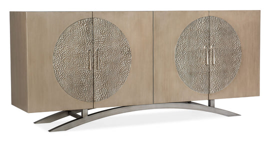 Symmetrical and stylish, the Nolita Entertainment Console is crafted of Oak Veneers with hammered champagne-colored metal circle-shaped door fronts, silver drop pendant pulls and an arched metal base. There’s one adjustable shelf behind each pair of...Prix soldé $5,279.00Prix normal $7,918.50Prix soldé $5,279.00Prix normal $7,918.50 -