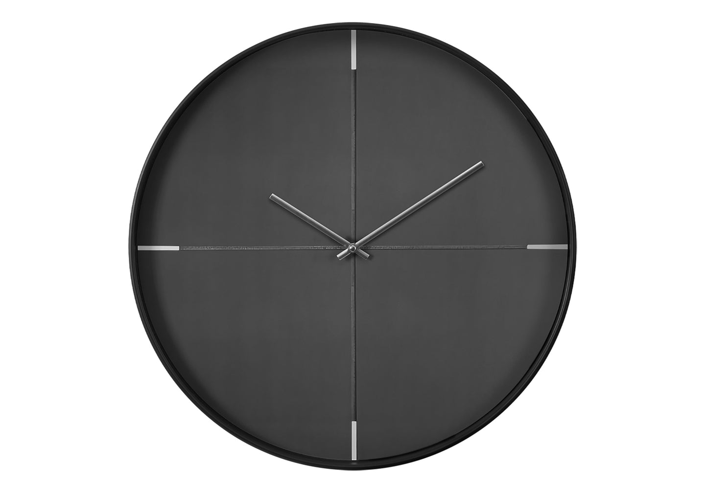 A fusion of style and functionality this stunning 20" round black wall clock is designed to make a simple, bold statement in any contemporary home decor. This beautifully crafted analog clock combines an effortless modern aesthetic with high-quality materials, making it a must-have decorative wall accent for trendsetters. Thanks to its reliable quartz movement and a non-ticking mechanism, this clock ensures accurate timekeeping in a peaceful environment. Encased in a sleek black plastic frame with easy to read, minimalist time markings under durable glass surface, this decorative timepiece will transform that wall space into a modern haven of style. With no assembly required, simply insert 1xAA battery (not included) and watch this clock come to life! Backed by a 2-year limited warranty against manufacturer defects, you can trust in the quality and longevity of this timepiece. For indoor use only, embrace a perfect blend of functionality and artistry with this simply chic black wall clock, because time should always tell a beautiful story.