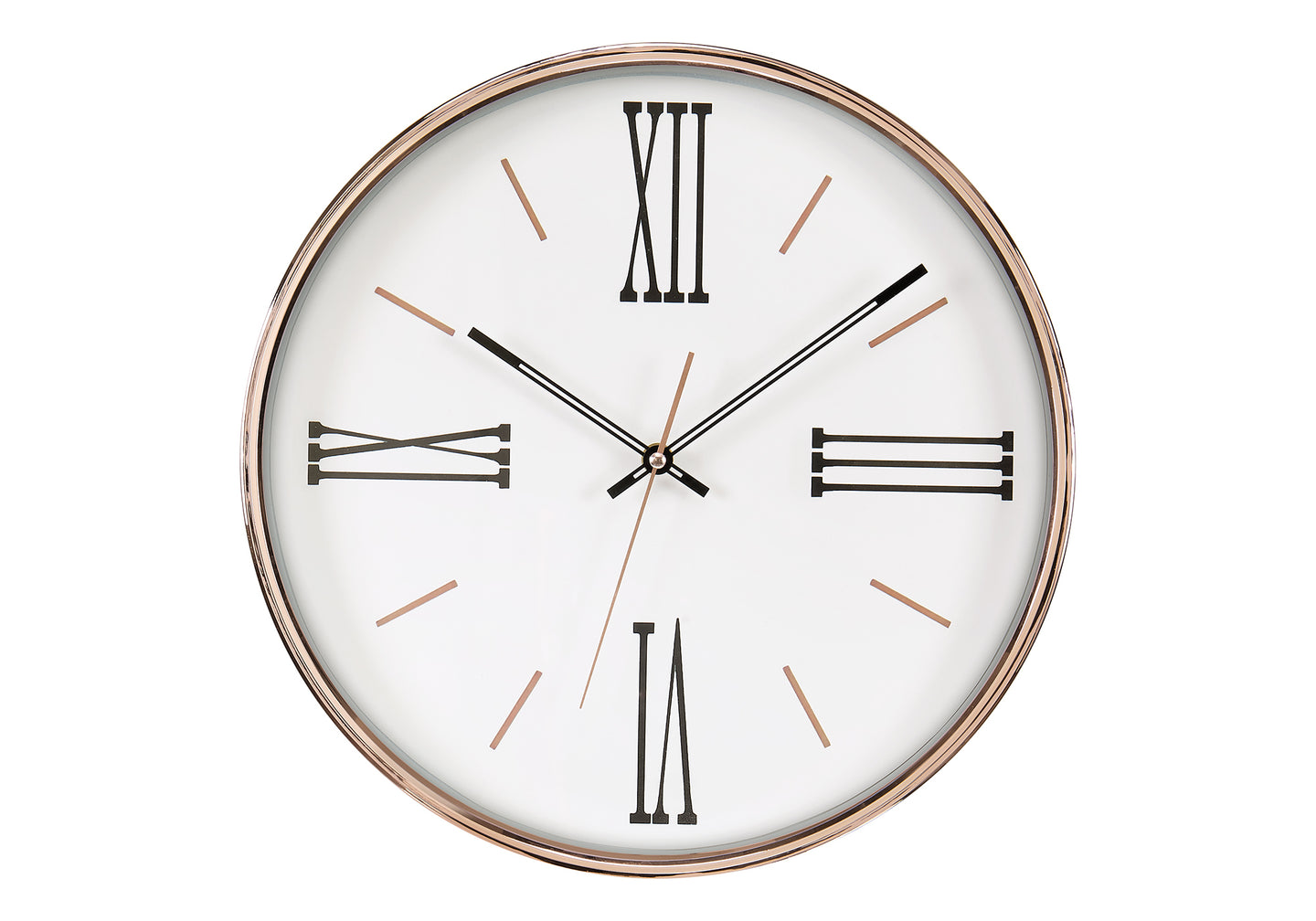 - Visually appealing with a clear glass surface and bold roman numeric markings, this analog clock is easy to read from a distance.