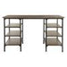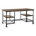 Blending transitional wood elements with modern traditional accents, the Millwood Collection brings a warm industrial ambiance to your home office. Decorative metal framing and base details contrast beautifully with the distressed ash veneer used on the desktop and shelving, creating a balanced look that feels both casual and refined. Designed for versatility, the Millwood Collection also includes matching bookcases, a counter-height writing desk, and a TV stand to complete your space.