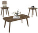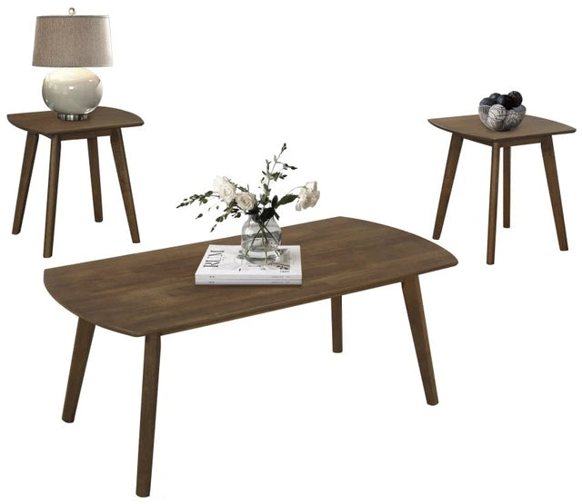 The retro-inspired profile of the Kamala Occasional Collection will perfectly accent your home’s modern décor. This convenient 3-piece set features one cocktail table and two end tables for you to arrange however you need in your living room. Each table's top has rounded contours for a soft and welcoming appearance. The classic design features a solid rubberwood frame and angled legs in a walnut finish, contributing to a sense of warmth and welcome in your home and ensuring you and your guests always feel comfortable and at ease.