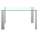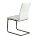 The clean lines of contemporary design are perfectly defined with this dining table. The rectangular posts with their chrome finish and the clear glass table top come together seamlessly to create a beautiful table with a light airy feel. Great for open concept areas where you don't want to close off the space, or even for tighter spaces where you want to create a more open feel. Contemporary style chair with chromed metal frame and faux leather seat. The subtle curves on the chair back and seat provide plenty of comfort.