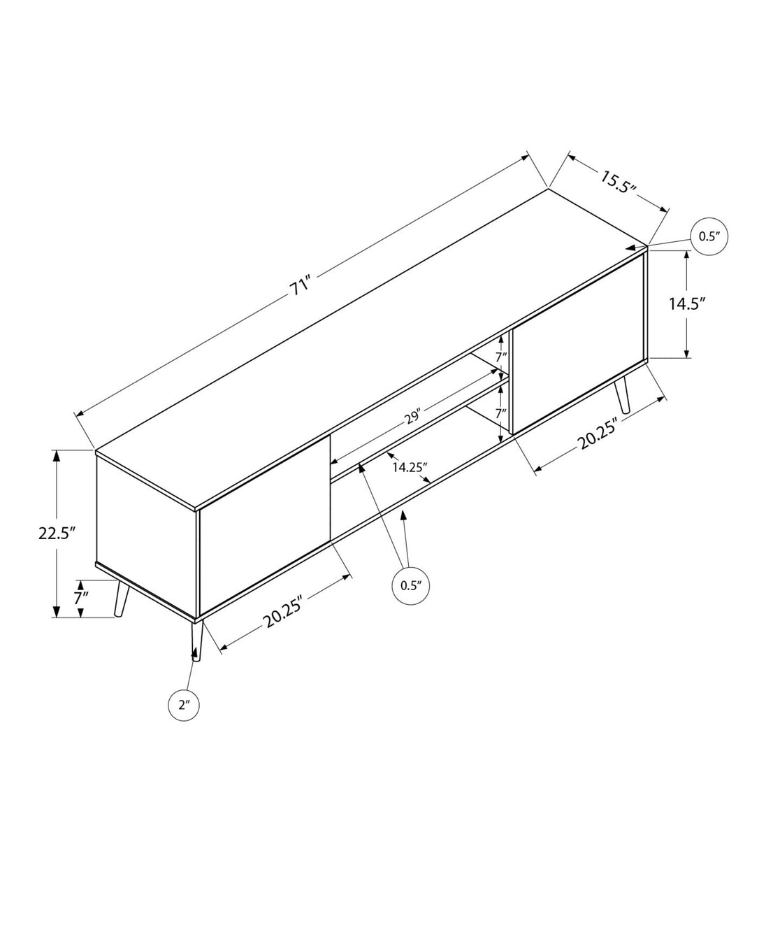 - This durably designed console includes a 5 year limited warranty against manufacturer defects ensuring long-lasting quality and satisfaction; product dimensions: 71 in. L x 15.5 in. D x 22.5 in. H