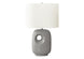 - Contemporary 26"h table lamp featuring a sleek light grey ceramic base with a stylish cut-out design, perfectly blending modern aesthetics with functionality to brighten up any living room, office, or bedroom.