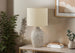 Revitalize your space into a stylish sanctuary with this on-trend 18"h table lamp. Designed with a refined sensibility, this decorative lamp features a beige ceramic base with textured vertical ridges for a sophisticated statement in a living room, bedroom, or home office. The classic, vase shaped textured finish base is topped with an elegant beige fabric shade to softly diffuse the light and create a warm and inviting ambiance whether placed on a nightstand, end or side table. With a convenient on/off turn knob switch for a 60W standard bulb (not included), this lamp will instantly brighten a dim corner. Backed by a 2 year limited warranty against manufacturer defects, you can trust that this fashionable and trendy accent lighting piece is built to last. Illuminate your home with contemporary elegance and let this ceramic table lamp be the stylish centerpiece that completes your decor vision.