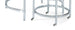 The Jadyn round cocktail features a cocktail with a clear glass top and a nesting table with a solid stone top and piano casters.