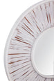 Ojos Wall Mirror is a round wall mirror featuring a weathered radial wooden frame.